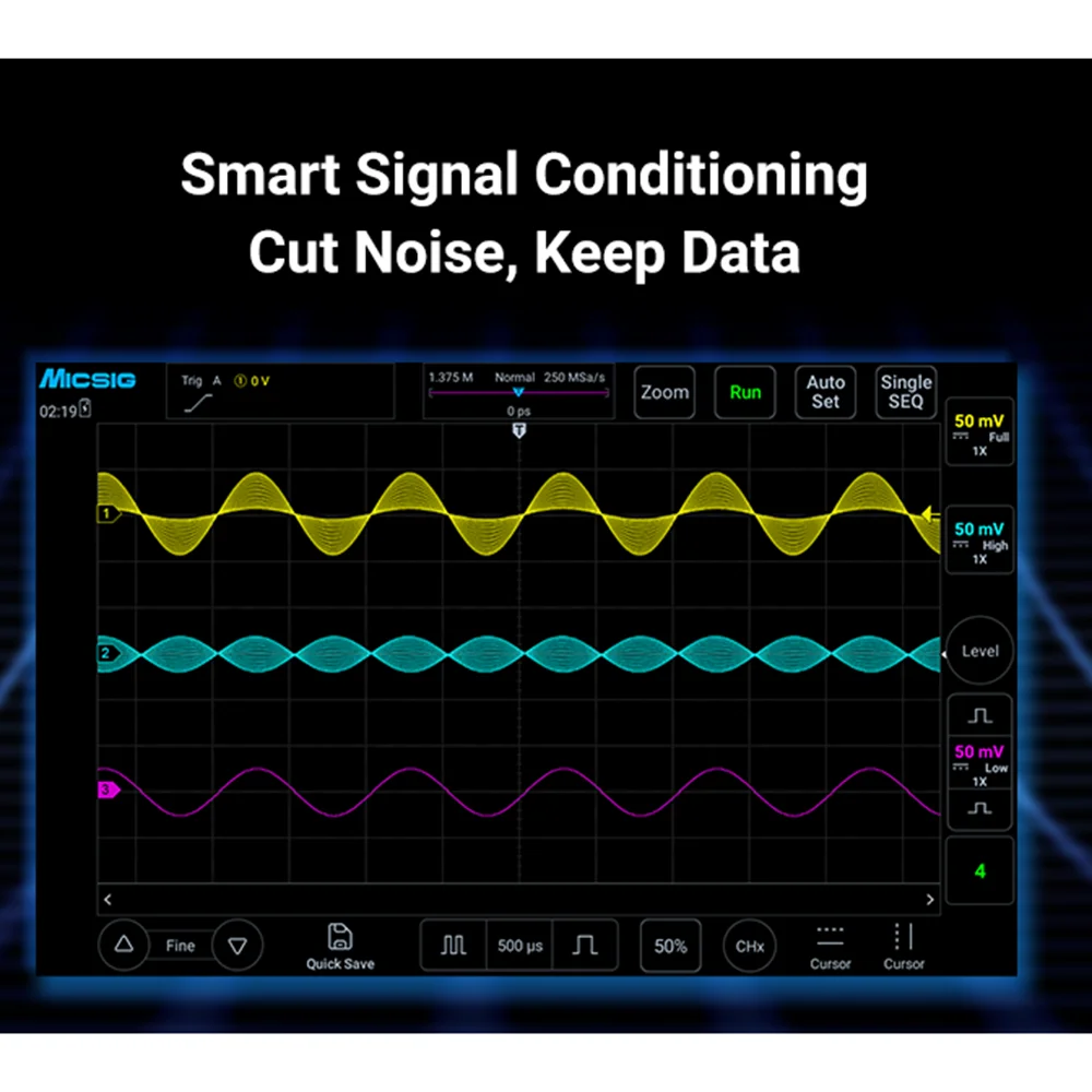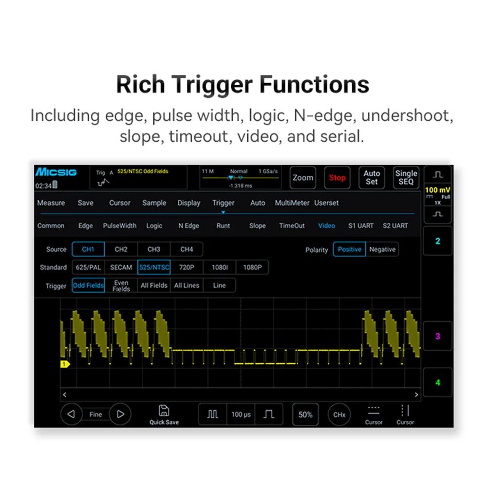 Micsig Digital Oscilloscope MHO14-100/MHO14-200 4Channel 100MHz/200MHz Bandwidt 1GSa/s Sampling Rate 12Bit Vertical Resolution